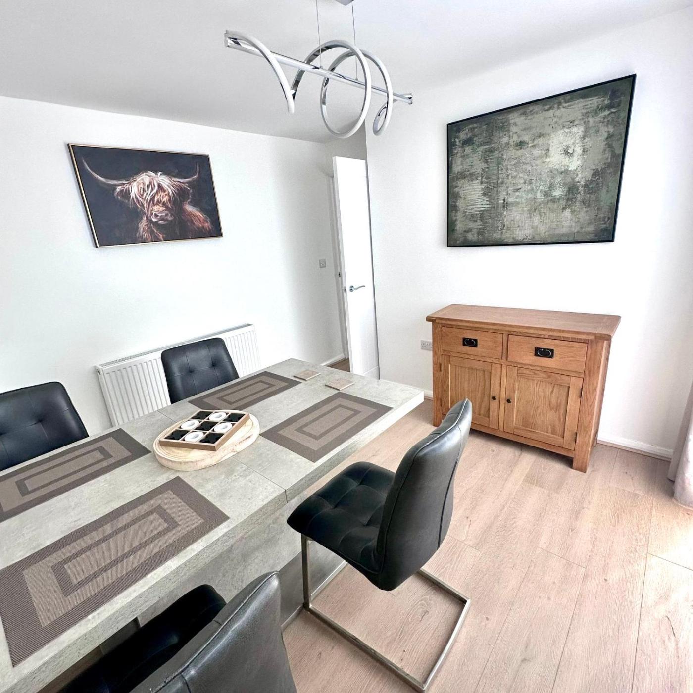 The 3-bedroom holiday home comes with a living room with a flat-screen TV, a fully equipped kitchen with an oven and a microwave, and 1 bathroom with a hair dryer. There is also a seating area and a fireplace.