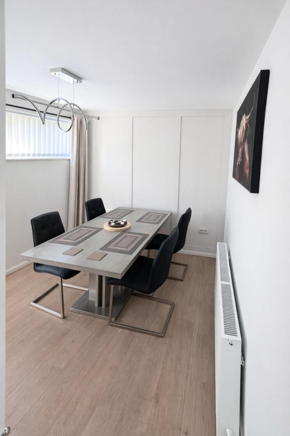 Three-Bedroom House. Guests will have a special experience as the holiday home provides a fireplace. This holiday home consists of 1 living room, 3 separate bedrooms and 1 bathroom with a hairdryer. Meals can be prepared in the kitchen, which is equipped with a stovetop, a refrigerator, an oven and a microwave. The holiday home features parquet floors, a seating area with a flat-screen TV, a washing machine, a tea and coffee maker as well as garden views. The unit offers 3 beds.