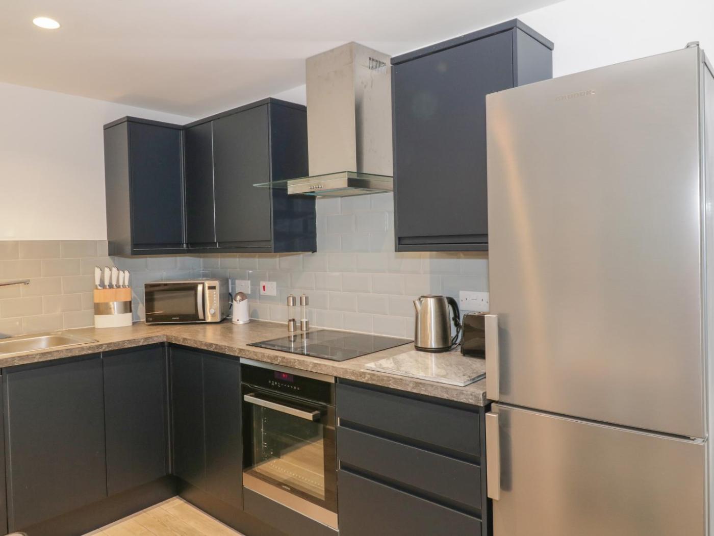 Holiday Home. This holiday home comes with 2 bedrooms, a seating area with a sofa and 2 bathrooms with a walk-in shower. In the well-fitted kitchen, guests will find a stovetop, a refrigerator, a dishwasher and an oven. The holiday home features a washing machine, a dining area, a wardrobe, an electric kettle, as well as a TV. The unit has 2 beds.