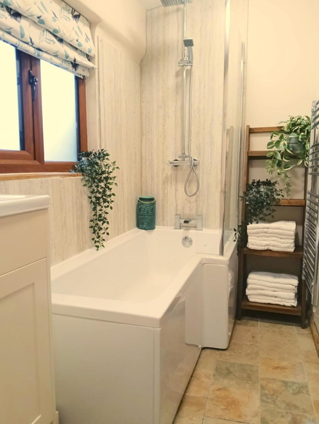 Three-Bedroom House. This spacious holiday home is comprised of 1 living room, 3 separate bedrooms and 2 bathrooms with a bath and a shower. In the kitchen, guests will find a stovetop, a refrigerator, a dishwasher and an oven. The holiday home offers a washing machine, a dining area, a wardrobe, a flat-screen TV with streaming services, as well as garden views. The unit offers 4 beds.