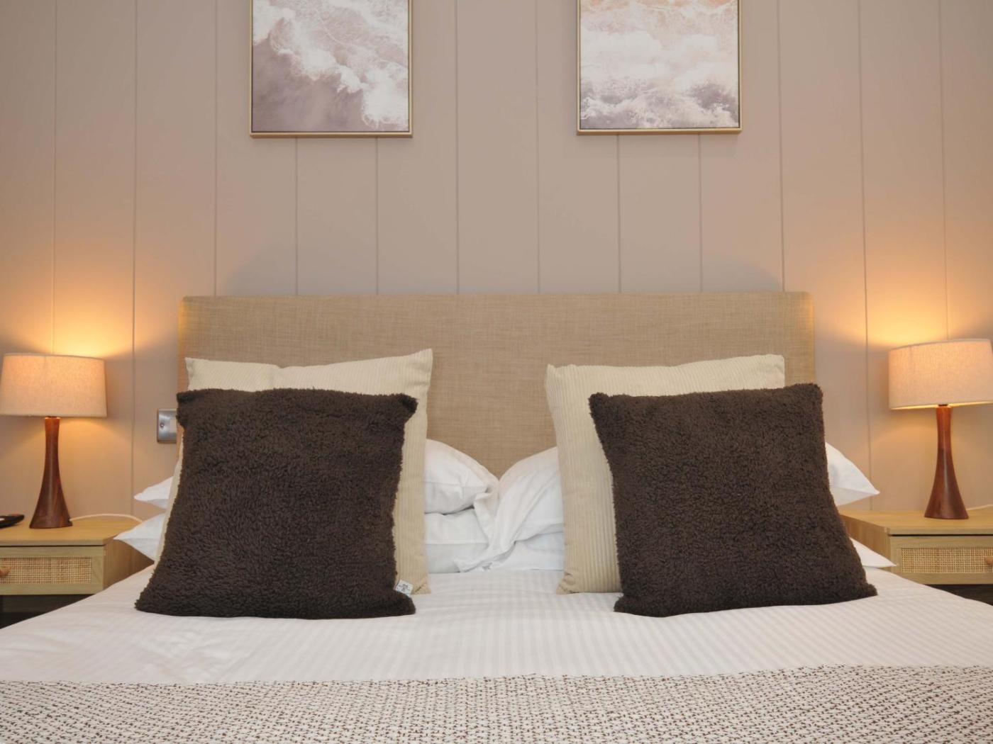The holiday home has 2 bedrooms, a TV, a fully equipped kitchen with a microwave and a toaster, a washing machine, and 2 bathrooms with a walk-in shower. There is also a seating area and a fireplace.