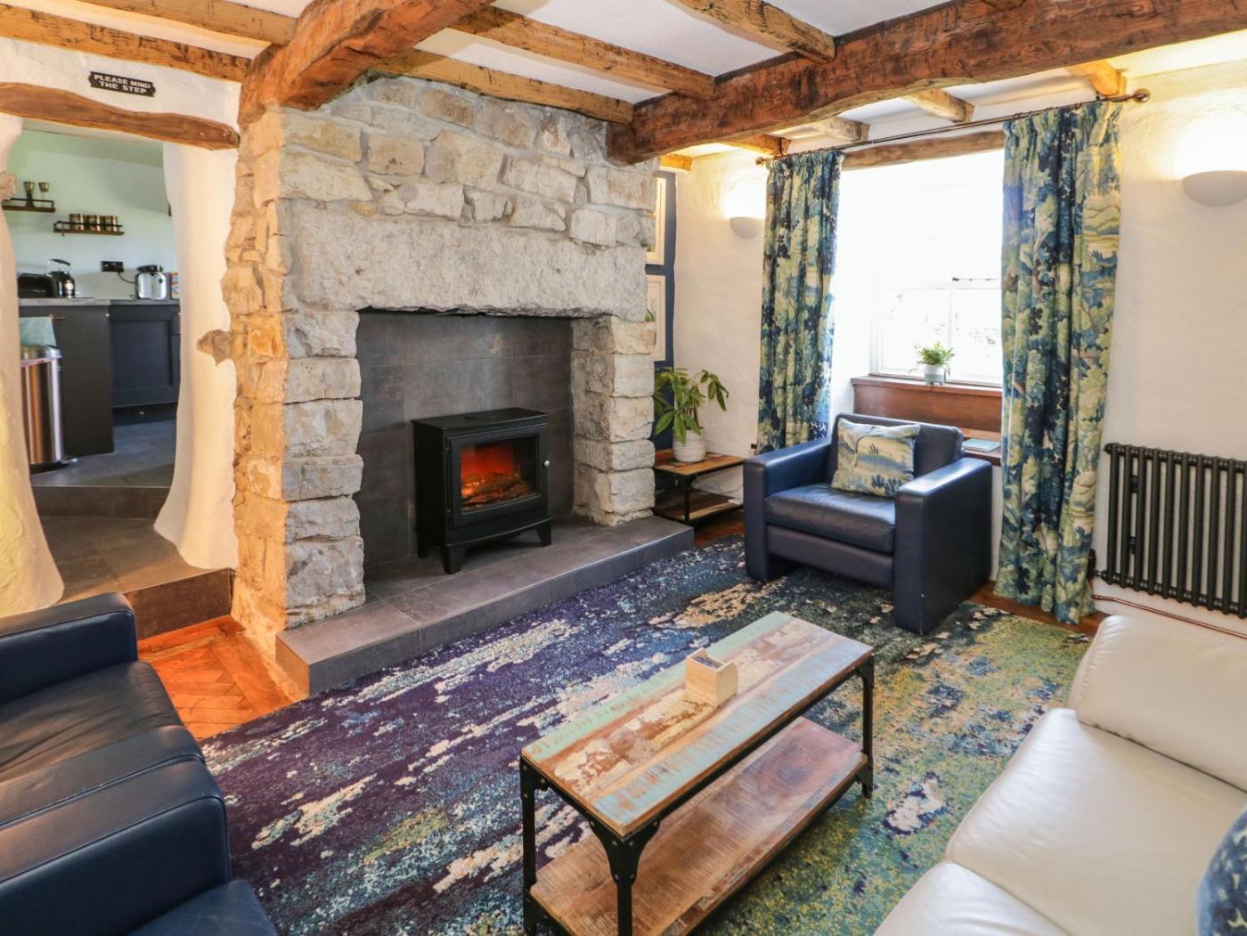 The holiday home has 2 bedrooms, a TV, a fully equipped kitchen with a dishwasher and an oven, a washing machine, and 2 bathrooms with a walk-in shower. There is also a seating area and a fireplace.