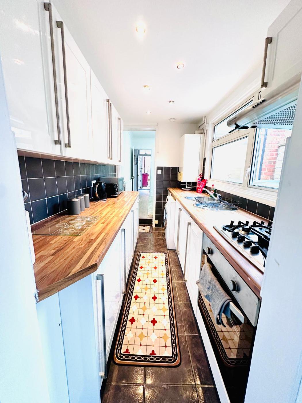 Three-Bedroom House. Boasting a private entrance, this holiday home also includes 1 living room, 3 separate bedrooms and 1 bathroom with a bath. In the well-fitted kitchen, guests will find a refrigerator, an oven, a microwave and a toaster. The holiday home has carpeted floors, a seating area with a flat-screen TV, a washing machine, a dining area as well as garden views. The unit has 3 beds.